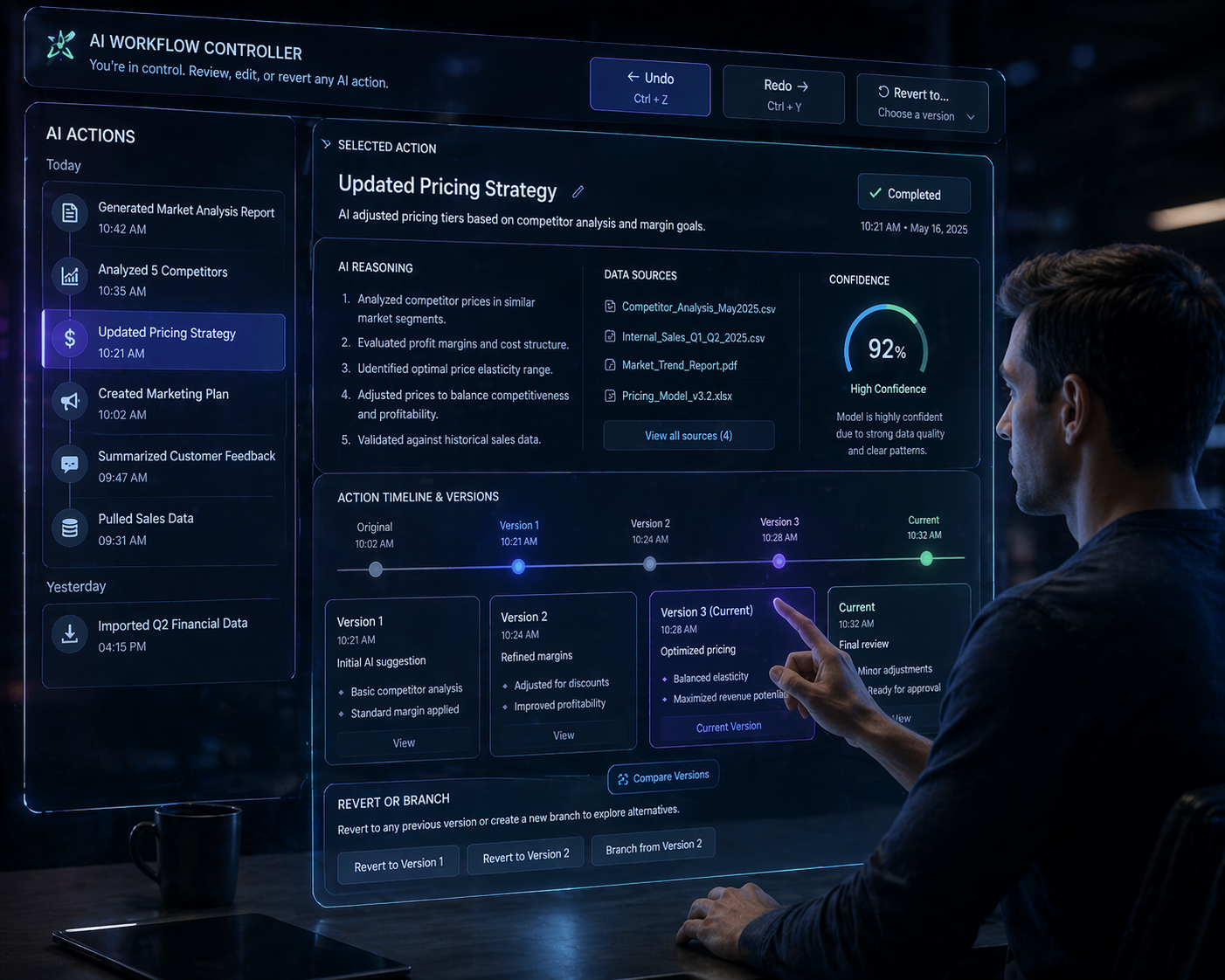 Product pattern: Treat AI interactions as collaborative editing sessions, not one-off requests. Build revision trails, action previews, and explicit override controls. Make reversibility a first-class feature, not an afterthought.