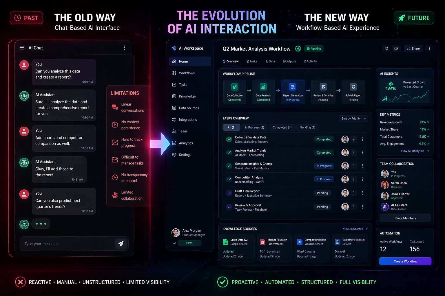 3. AI UX must align with workflow, not replace it. Users don’t want to chat with AI; they want to complete tasks. When AI forces a conversational paradigm onto non-conversational work, adoption stalls.