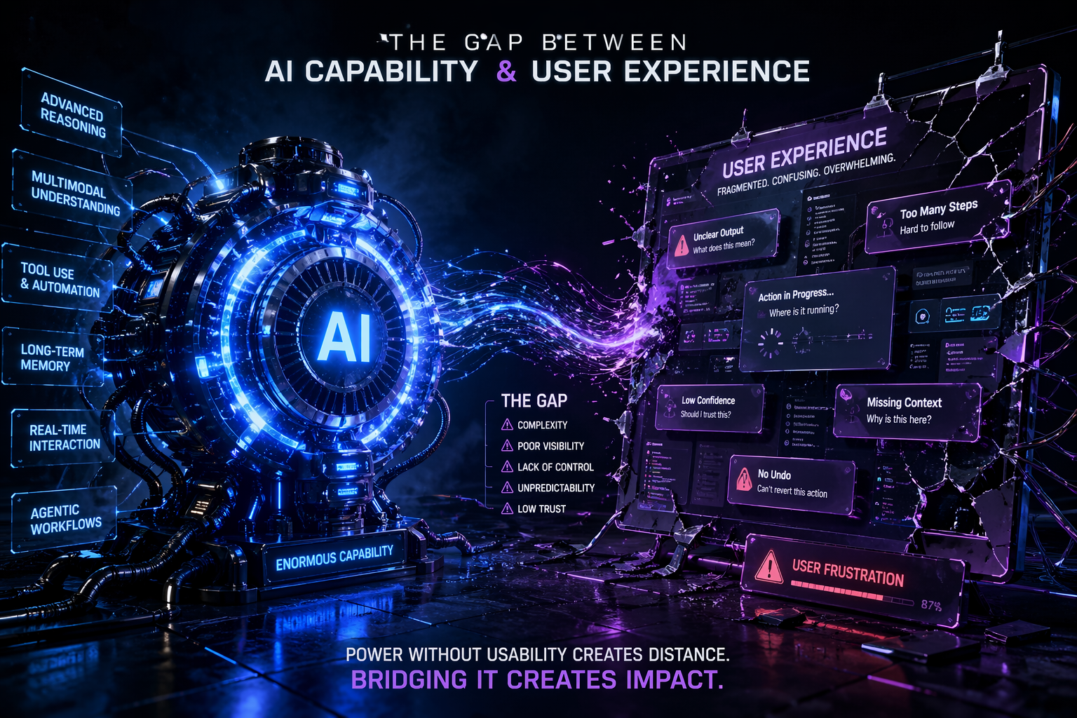 Product teams are learning a hard but necessary lesson. Better models don’t automatically translate to better products. A more capable foundation model is like upgrading an engine: it can produce more power, but if the steering, suspension, dashboard, and driver training haven’t evolved, the car remains difficult to control. AI products are hitting the same wall. The gap between what the system can do and what users can reliably, safely, and intuitively do with it is widening, not closing.
