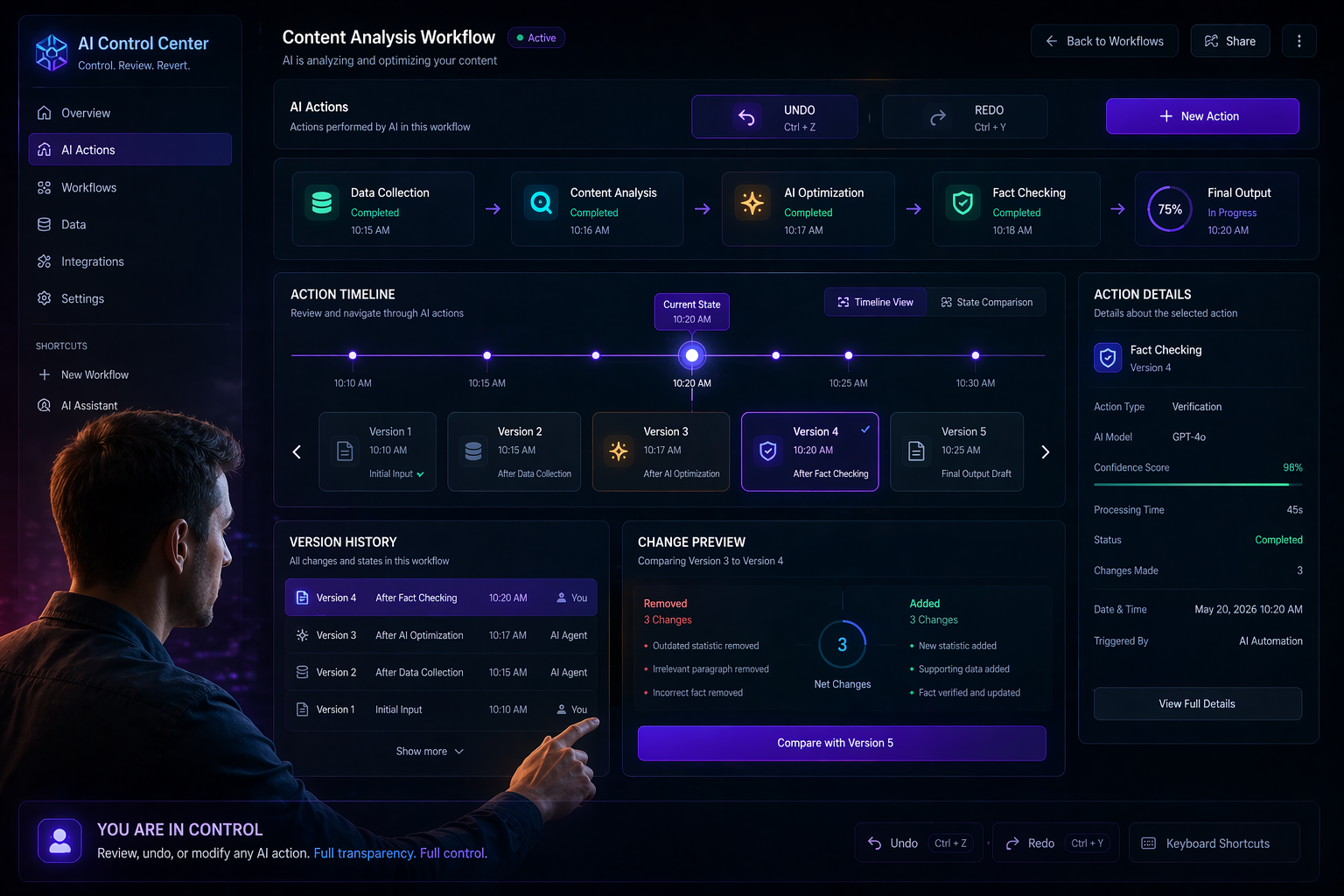 - Implement workflow-level undo: Allow rollback of specific actions, not entire sessions.
