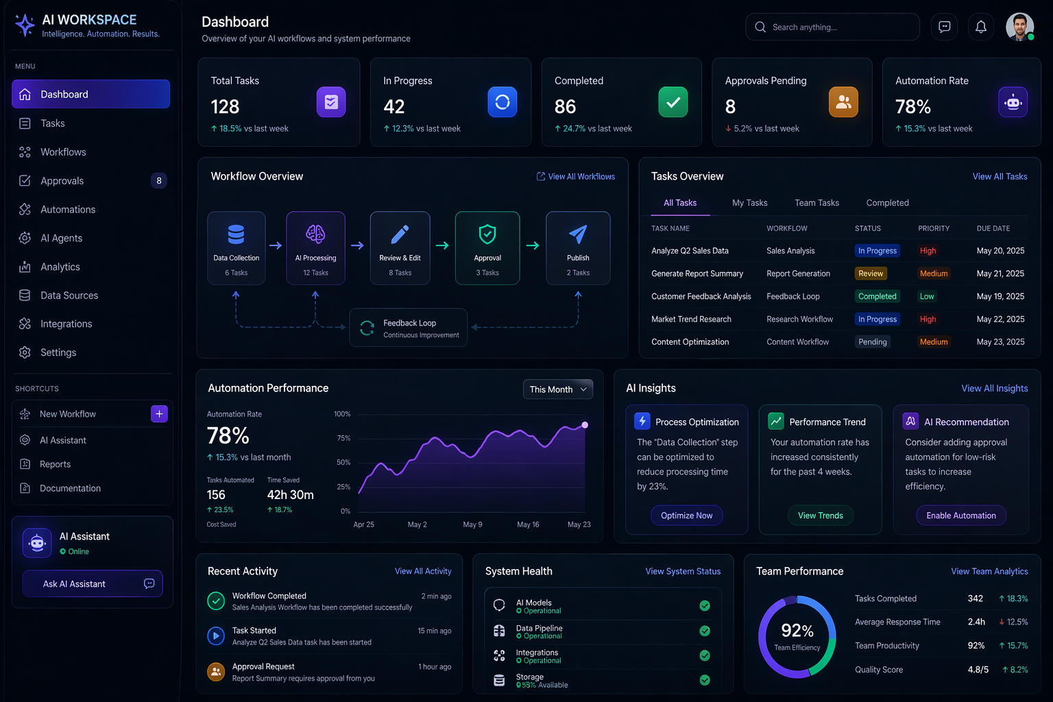 Example: A marketing team using AI for campaign generation needs a board view: draft creatives awaiting review, scheduled posts pending approval, performance data updating in real time. The dashboard replaces chat threads with operational clarity.